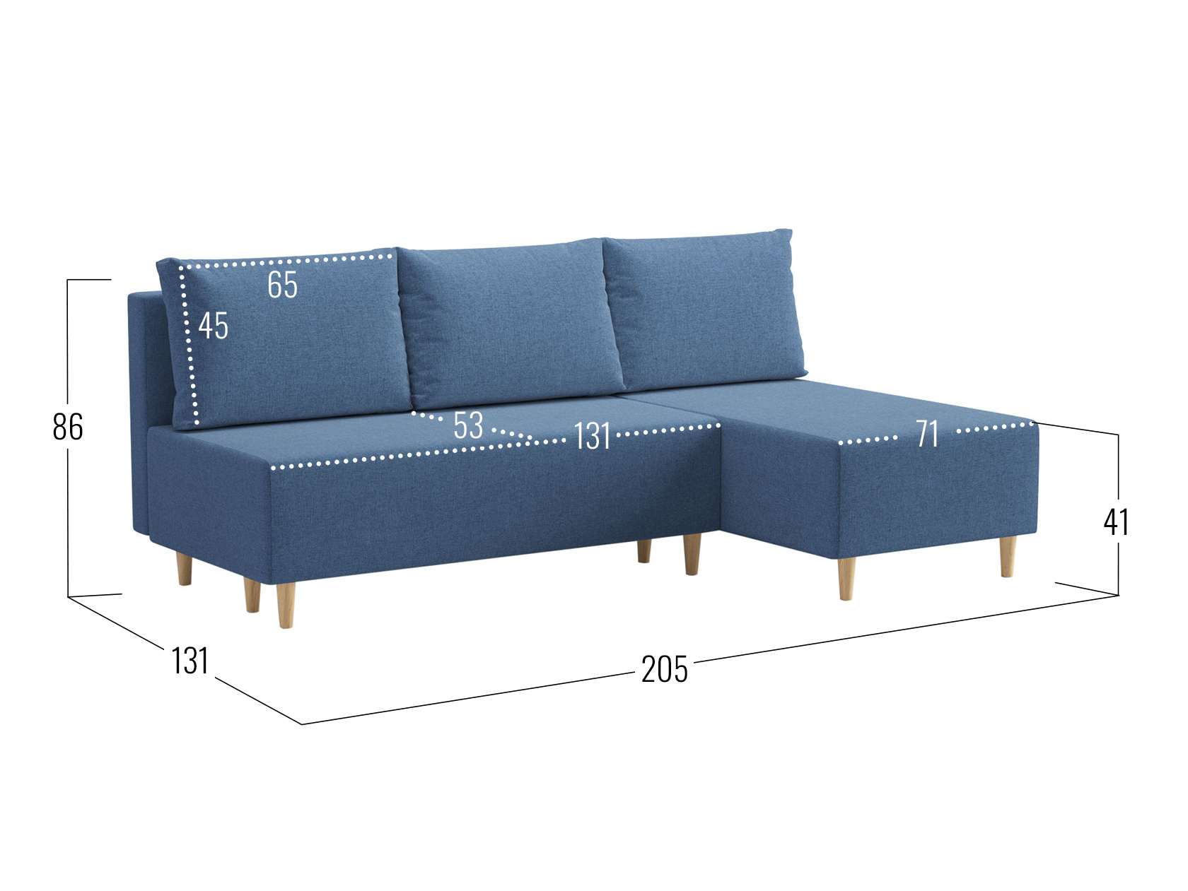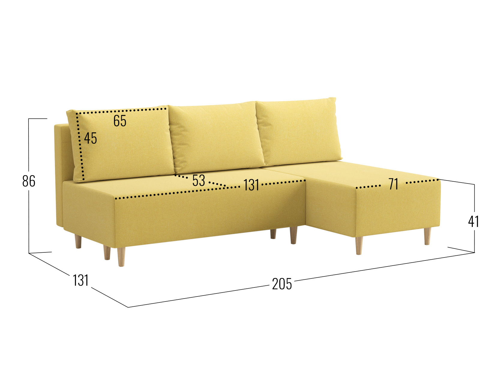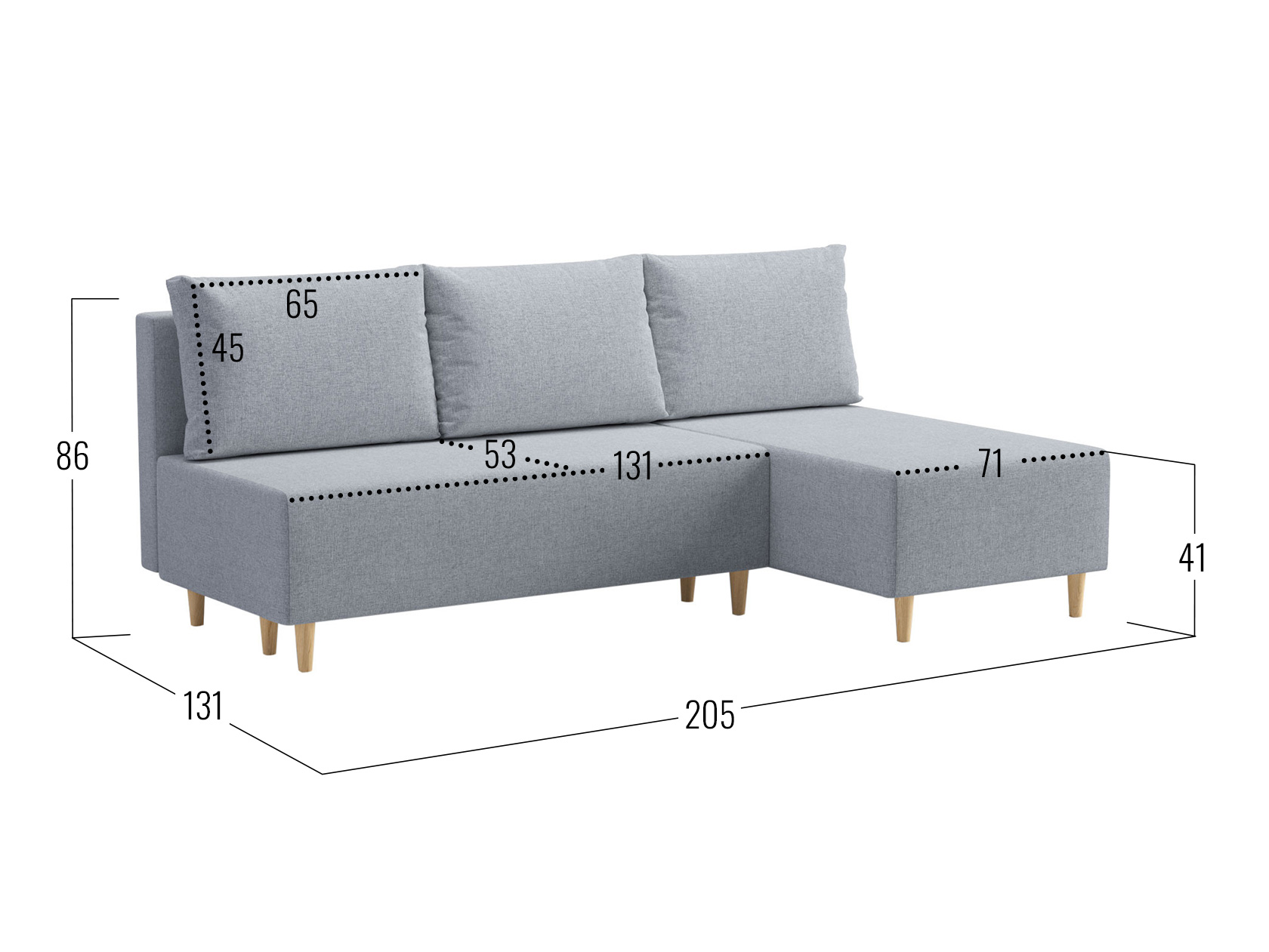 Посадочное место без подушек (ШхГ): 202 х 77 см.