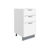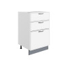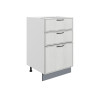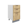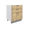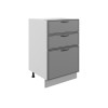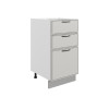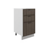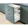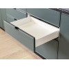 Комбинированное наполнение идеально подойдет для поварских приборов, крупногабаритной посуды и небольшой техники. Плавный бесшумный ход ящиков — еще одно преимущество модуля. Благодаря регулируемым ножкам шкаф остается устойчивым даже на полу с перепадами высоты.