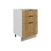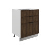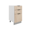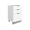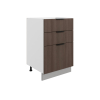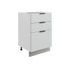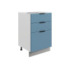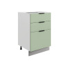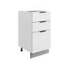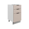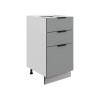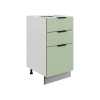 Система выдвижения выдерживает большие нагрузки, поэтому в ящиках удобно хранить тяжелую посуду. Регулируемые опоры компенсируют неровности напольного покрытия. За матовой поверхностью фасадов легко ухаживать с помощью обычной влажной уборки.